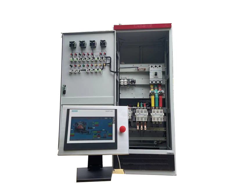 該控制柜采用西門子PLC控制;觸摸屏操作、控制、顯示為一體;具有一鍵啟動,智能化控制,電機(jī)的運(yùn)行適時監(jiān)控,各電機(jī)的相關(guān)關(guān)聯(lián)控制,真正做到了關(guān)聯(lián)控制、相互制約,顯示屏具備操作功能;顯示電壓、電機(jī)電流,工作狀態(tài)參數(shù)、故障報警、自動停機(jī)等功能。